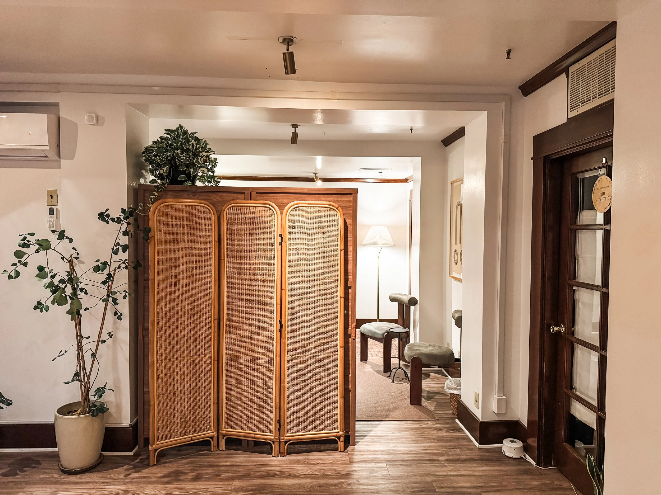 My office is conveniently located in the heart of Old Pasadena, in a beautifully renovated Craftsman-style home, repurposed for therapy practices. My office is one of seven, and we have a group therapy space in the basement of the house. Our quiet, tree-lined street and the cozy, home-like feel of the space offer a sense of calm and privacy that supports deep, reflective work.